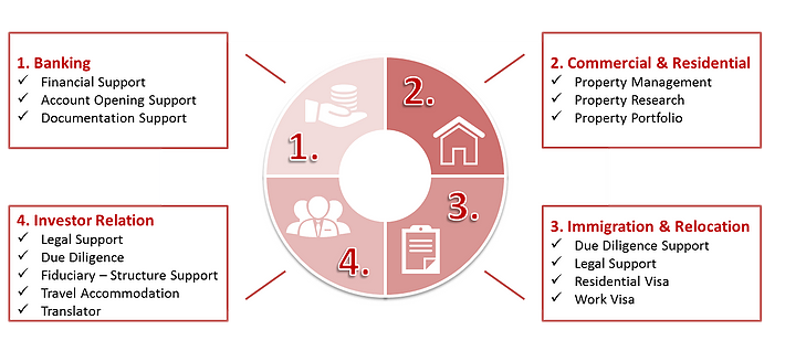 Through our extended and trusted international network, we are able to provide our clients with particular and reliable international immigration services. These services include all-in-one relocation and wealth management support provided in connection with our external experienced agency partners. With regards to a new citizenship, we provide our clients with accompanied consulting, administration, fiduciary, legal and investment services adjusted to their new geographic environment.